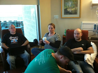 That was Thursday night. On Friday Mark drove his dad home from the Huntsman. Jay just wanted to be home and we were happy to have him there. He had spent 19 days (I think) in the Huntsman and it was so good for everyone to have him home. The Relief Society brought food Sat. and Sunday and we were able to just enjoy being together. There was a steady stream of people coming to see Jay which everyone enjoyed. For me this part was stressful. For most of Jay's illness he had seemed relatively well - he had just been himself and been able to do things for himself. It was hard to watch him be so ill that he couldn't even stand or do anything at all - most times he couldn't carry on conversations. It was just really hard for me and probably everyone to see him like that.